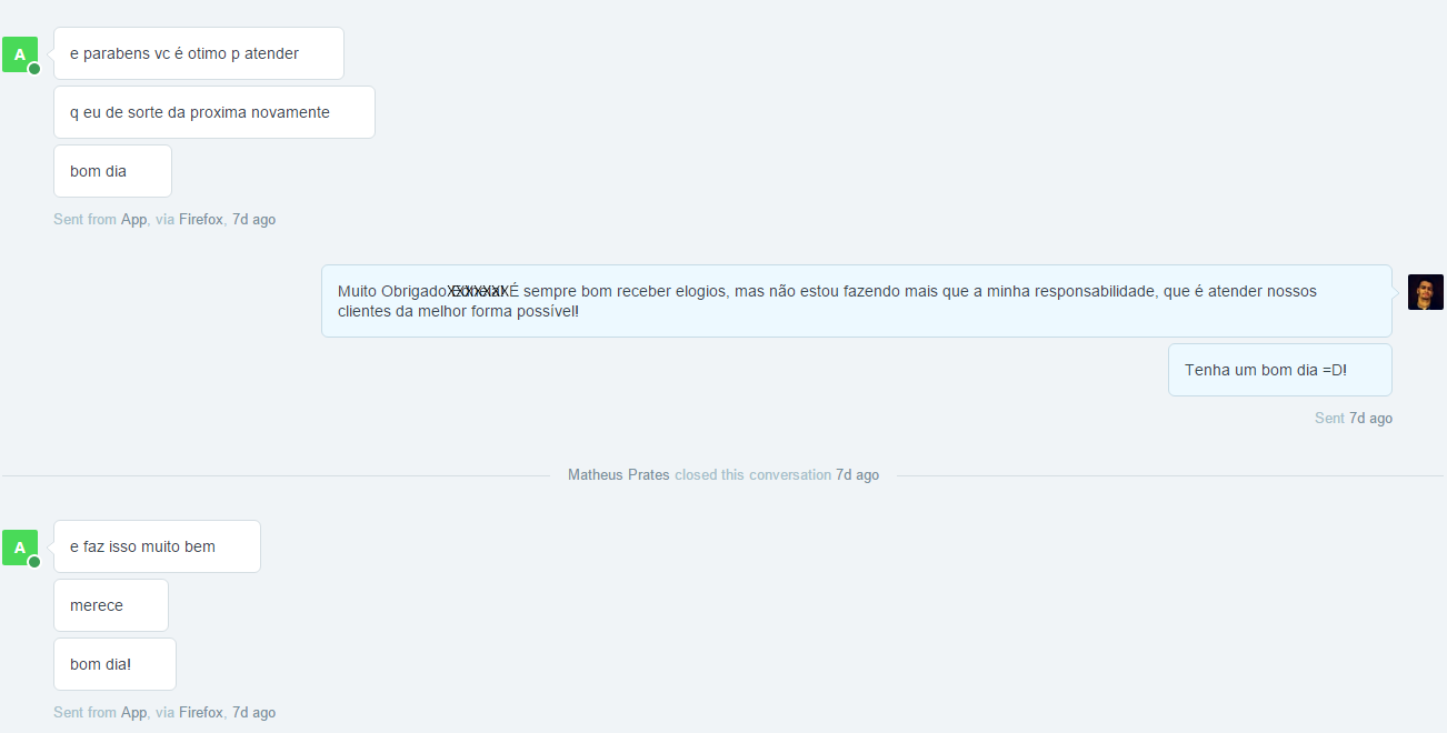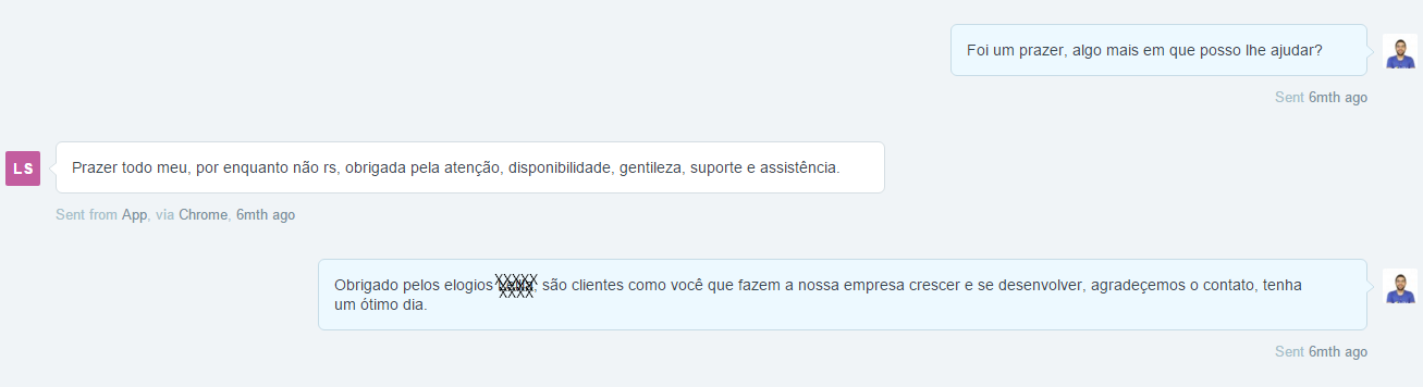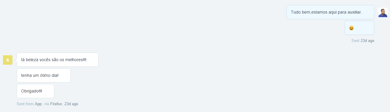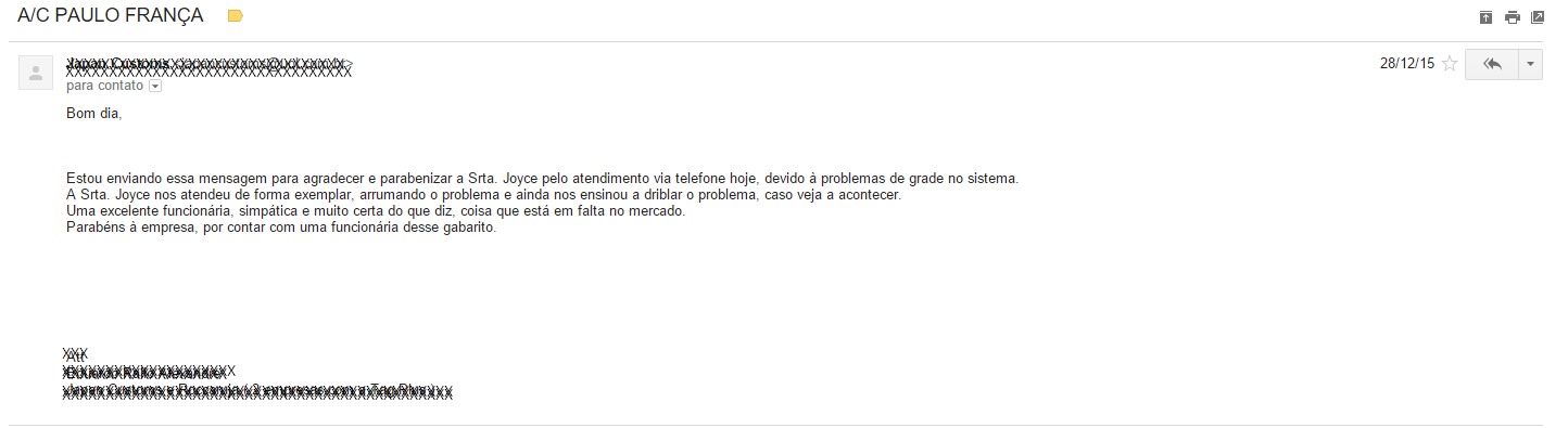 Resolvemos então criar aqui uma coleção de elogios que nosso suporte técnico recebe diariamente. Todos os elogios são de clientes reais e são “prints” (fotos) da tela do computador.