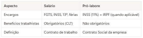 Não. Embora o pró-labore seja uma forma de remuneração, ele não é considerado salário e possui diferenças importantes: